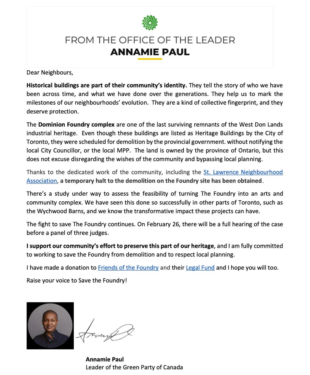 Annamie Paul On Twitter My Letter In Support Of Save The Foundry Savethefoundry Torcen Respectlocalplanning Cdnpoli